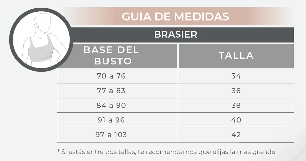 • Banda elástica en la base del busto para mayor seguridad y soporte.